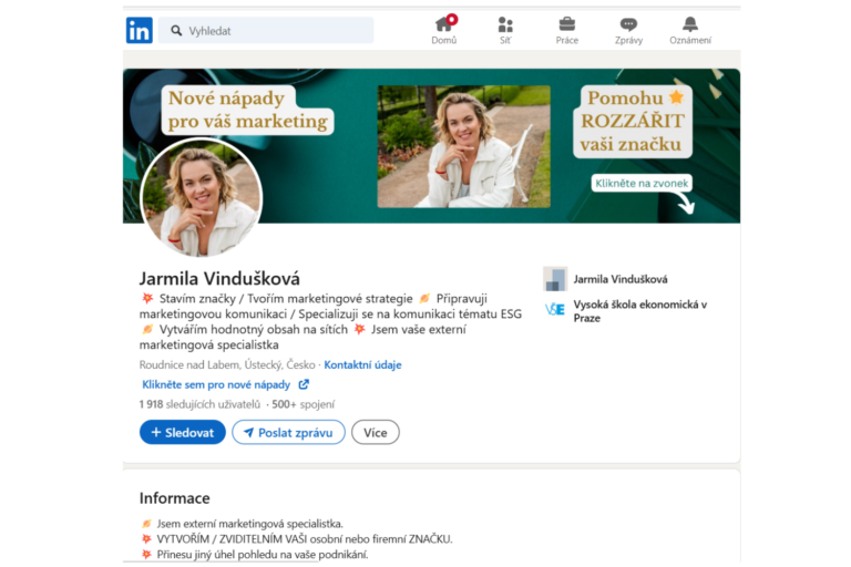 • Dostanete informace od zkušené marketérky, která pomáhá svým klientům rozzářit svoji značku a byznys na LinkedIn.